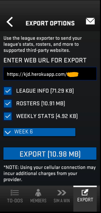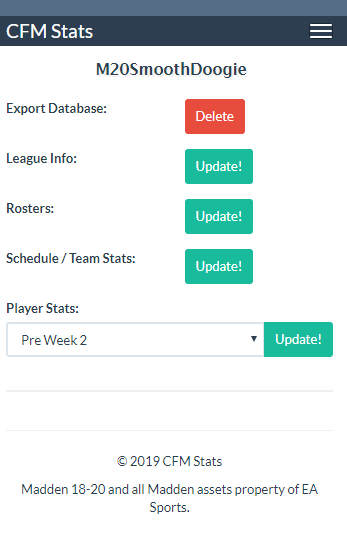 Madden Companion App - Exporting Data